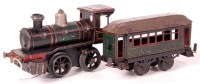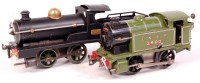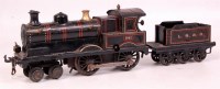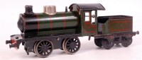 Lot 491 - German clockwork 0-4-0 lithographed dark green...