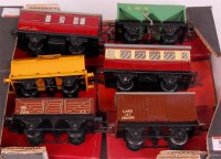 Lot 555 - A small tray containing 6 Hornby pre war items...