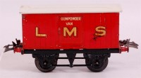 Lot 598 - Hornby 1934-9 red LMS 'Gunpowder van' on black...