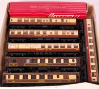 Lot 627 - 7 Hornby Dublo D3 coaches wheels changed for...