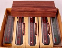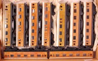 Lot 860 - 9x Trix LNER teak metal coaches, three 1st...