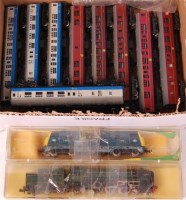 Lot 922 - Tray containing 3 Farish N gauge teak coaches,...