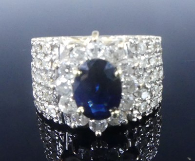 Lot 2648 - A white metal, sapphire and diamond lozenge...