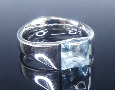 Lot 2624 - A white metal blue topaz single stone ring,...
