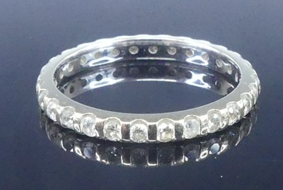 Lot 2632 - A white metal diamond eternity ring, featuring...