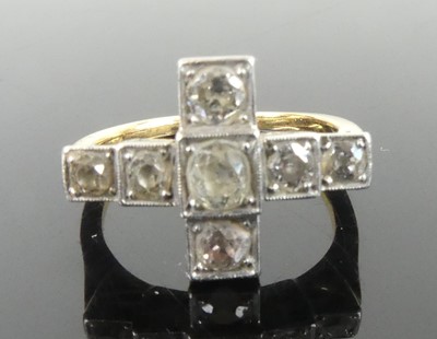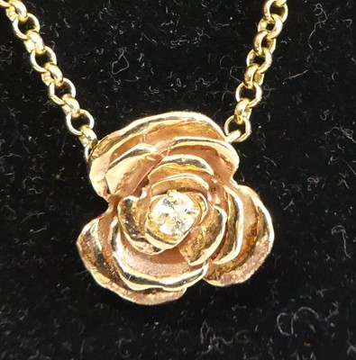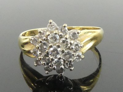 Lot 2679 - A yellow and white metal diamond flower shaped...