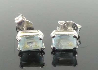 Lot 2647 - A pair of 18ct white gold aquamarine single...