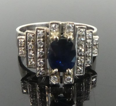 Lot 2655 - An Art Deco yellow metal sapphire and diamond...