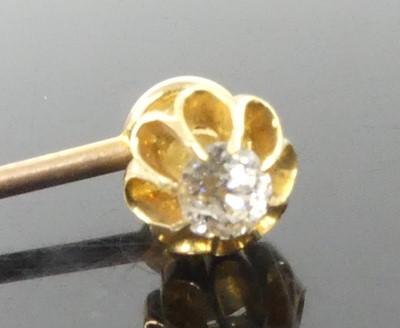 Lot 2606 - A yellow metal diamond stick pin, featuring an...