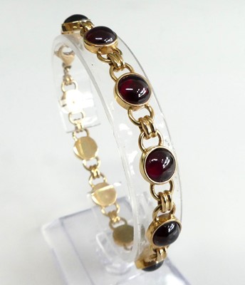 Lot 2599 - A 9ct gold cabochon garnet set bracelet,...