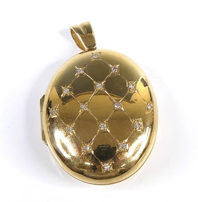 Lot 2615 - A contemporary 9ct gold diamond set oval...