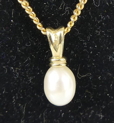 Lot 2616 - A modern 9ct gold cultured pearl set pendant...