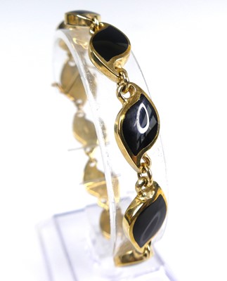 Lot 2618 - A contemporary 9ct gold and polished black...