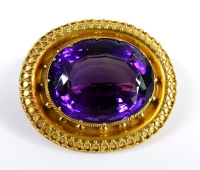 Lot 2620 - A Victorian style yellow metal amethyst set...