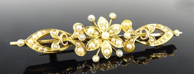 Lot 2627 - A circa 1900 yellow metal and seed pearl set...