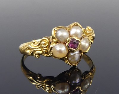 Lot 2603 - A Victorian yellow metal seed pearl and garnet...
