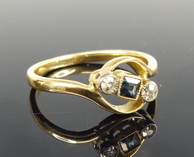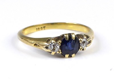 Lot 2604 - An 18ct gold sapphire and diamond three-stone...
