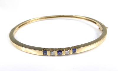 Lot 2651 - A 9ct gold sapphire and diamond set hinge...