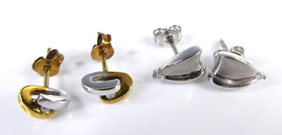 Lot 2614 - A pair of contemporary 9ct white gold earrings,...