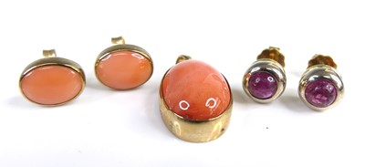 Lot 2653 - A pair of yellow and white metal cabochon...