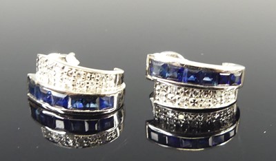 Lot 2684 - A pair of 14ct white gold sapphire and diamond...