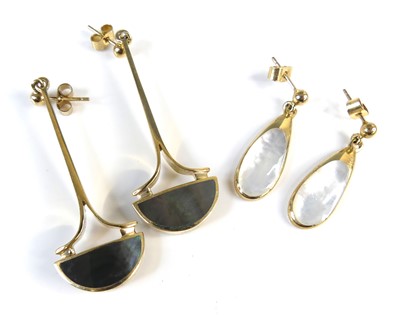 Lot 2685 - A pair of 9ct gold and mother of pearl inset...