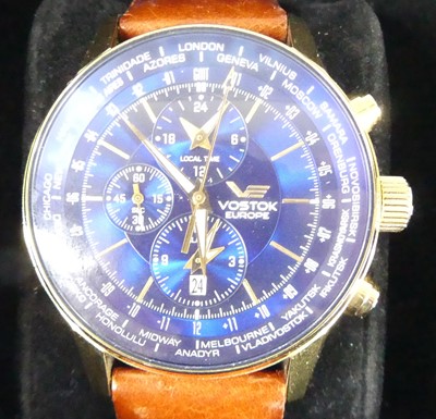 Lot 2665 - A Vostok Europe stainless steel gilt plated...
