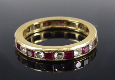 Lot 2675 - A yellow metal ruby and diamond eternity ring...