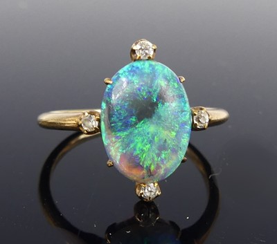 Lot 2676 - A rose metal opal and diamond dress ring, the...