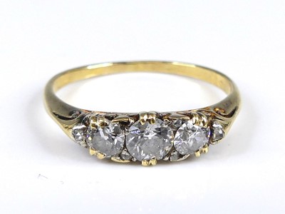 Lot 2687 - A yellow metal diamond 3 stone ring featuring...