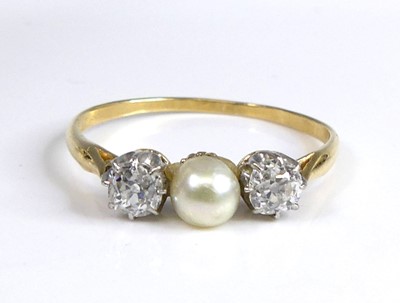 Lot 2688 - A yellow and white metal pearl and diamond 3...