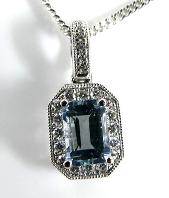 Lot 2689 - A 9ct white gold aquamarine and diamond...