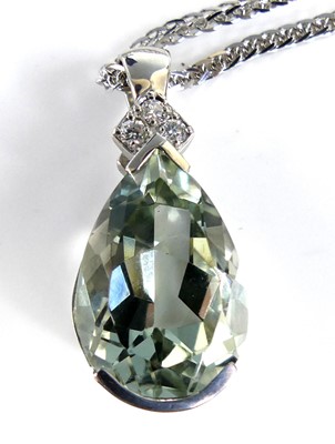 Lot 2690 - A 9ct white gold prasiolite and diamond...