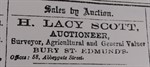 The first mention of the firm was in the Bury Free Press of 9th July 1869 in the form of an announcement; "Mr Henry Lacy Scott begs to advise as to his setting up in business as an Auctioneer and Valuer, the office being at No.3 Guildhall Street".