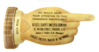 Until relatively recently, books were prohibitively expensive, and folding pages could cause damage; therefore bookbinders and printers developed integral ribbons. Bookmarks soon became separate items in themselves, often just a strip of fabric (as paper was still expensive), then becoming more personalised. With industrialisation and mass production, bookmarks began to be produced in many materials and styles. Personal dedication, public messaging, souvenirs, advertising (such as the early celluloid example here), with mottoes and motifs, family crests and so on. From simple card or a silk ribbon, to leather, treen, tortoiseshell, malachite and other stones, bakelite, silver and brass examples. Decorated with embroidery, tassels, repousse engraving, paint, enamel and gemstones, the scope became almost infinite. And of course, with improvements in printing, education, and the growth of public libraries, more people had access to books than ever before.